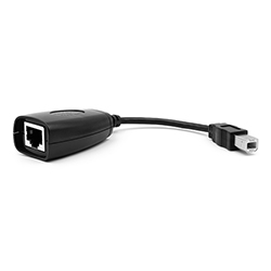 This simple USB adapter converts USB signals into a form that can be transmitted over Ethernet cable, then reassembled into a standard USB signal at the other end. This allows you to extend your USB connection to distances up to 150 feet, almost 10 times the length limit of standard USB cabling.